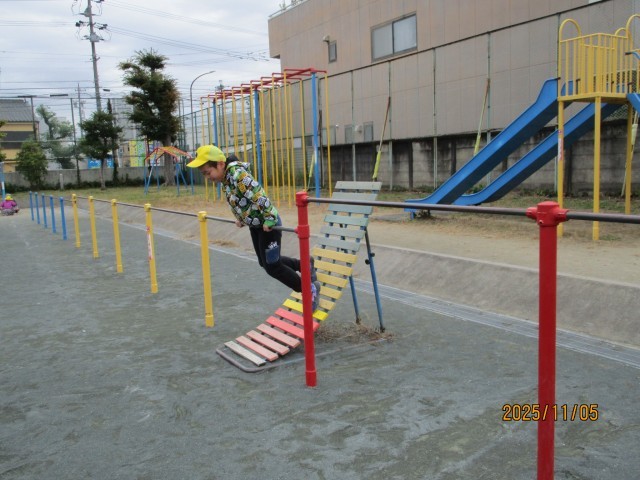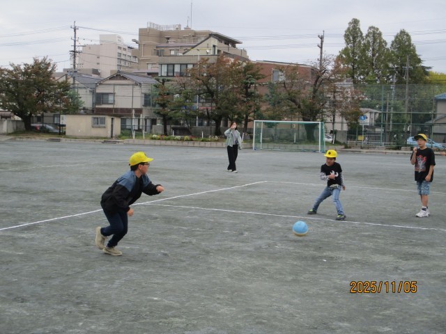 給食の用意までの限られた時間になるので、ドッジボールや鉄棒、雲梯などをして体づくりをしました。