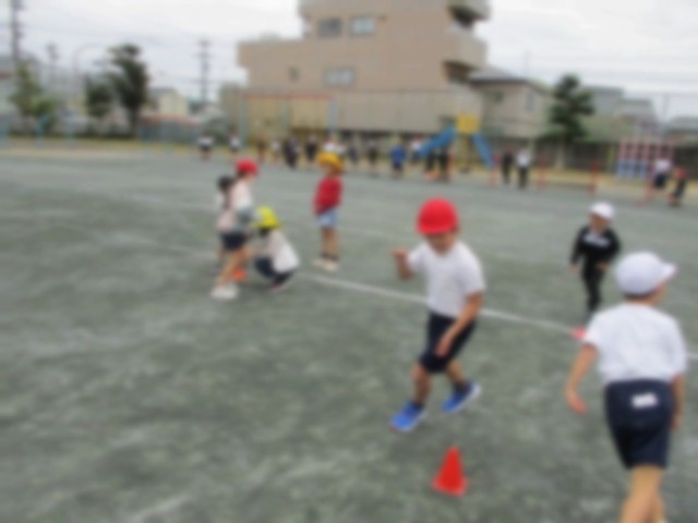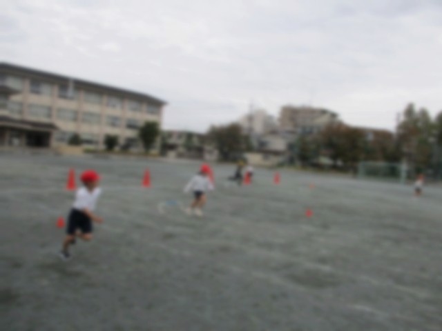 2年生は、体育でリレー遊びをしました。いくつかの障害物を飛び越えたり、回ったりしてゴールを目指して走りました。どこに障害物を置くか、友達と意見を交わしながら楽しく体を動かすことができました。