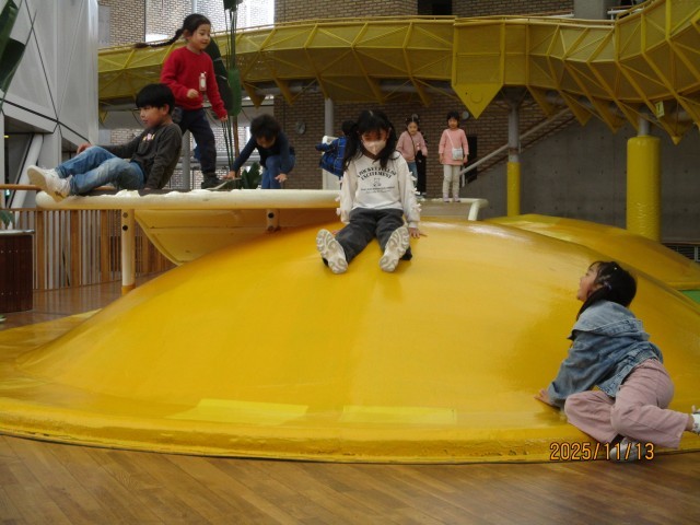 1年生の校外学習では、児童総合センターに行きました。室内遊具には高くそびえ立つチャレンジタワーがあり、目を輝かせて登る児童が多かったです。お弁当の時間は、とても嬉しそうに、「〇〇が入ってたよ!」「これがおいしいんだよ!」と教えてくれました。元気いっぱいに過ごした校外学習。並ぶときはサッと並ぶこともでき、はなまるな一日となりました。