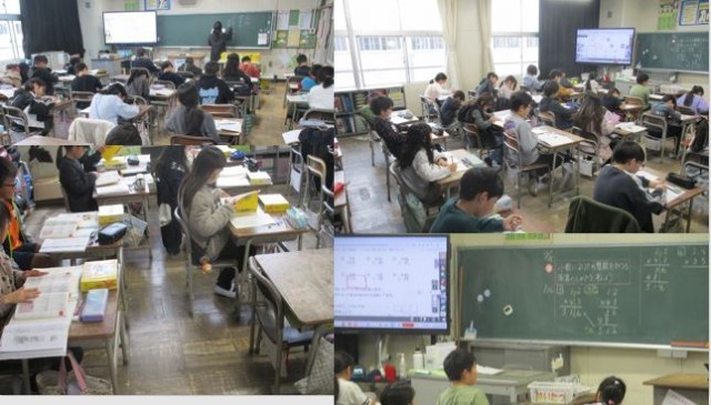 4年生の授業です。国語では慣用句、算数は少数に2ケタの整数をかける筆算の勉強です。慣用句の授業では辞書を使って言葉の意味や使い方を調べました。
