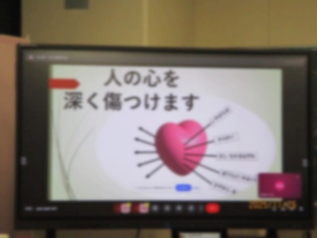 今日は朝礼で校長先生から人権講話をしていただきました。