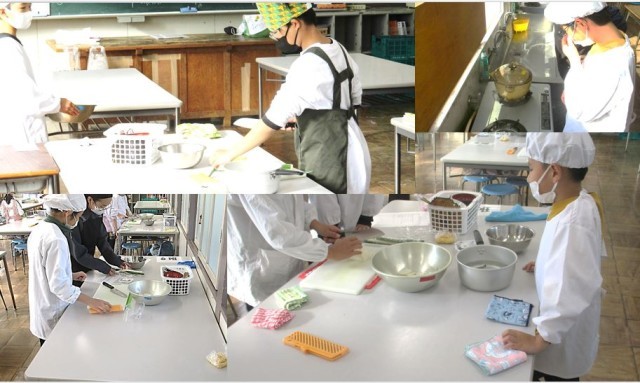 5年生の授業、家庭科では調理実習をしています。ごはんとお味噌汁をつくります。お味噌汁は、煮干しから出汁をとりました。