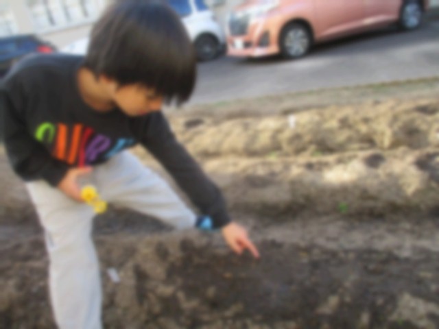また朝寒く、土やビオトープに氷が張っていました。子どもたちが氷を触ったり土の上の