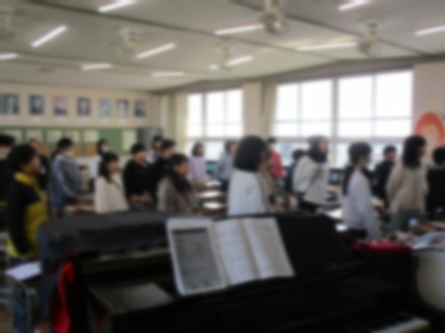 今日の音楽の授業は、リコーダーのテストと歌の練習をしました。