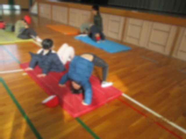 今日の体育は、体つくり運動と跳び箱をしました。体つくり運動は、だるまからブリッジなどをしました。