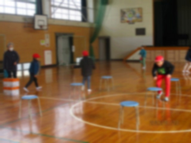 また跳び箱は椅子を跳んだり2つつなげた跳び箱を跳んだりして、子どもたちはいろんな運動をしました。