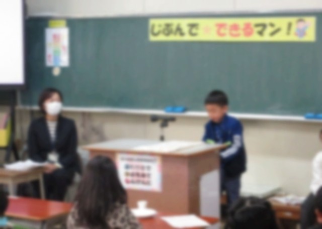 1年生は、生活科の「自分でできるよ」の学習のまとめとして、子どもたちが自分でできるマンに変身して発表を行いました。みんなよく頑張りましたね。どの発表もとても素敵でした。