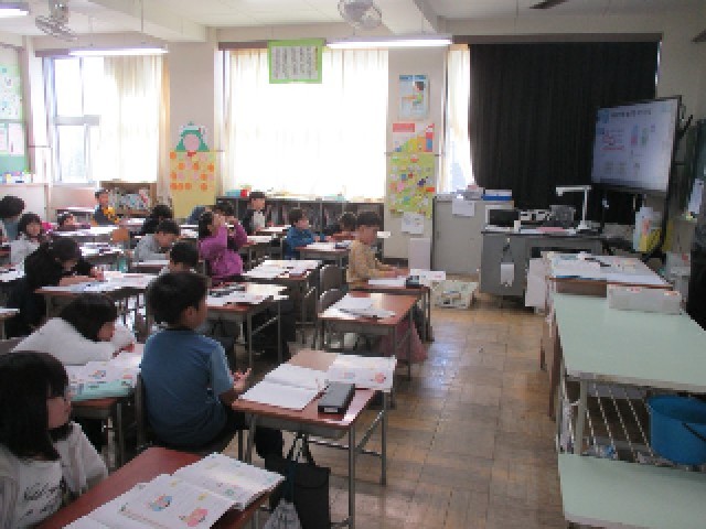 算数の学習で100までの数の計算をしています。大きな数でも10の束を使い、今までの考え方を使って計算していました。