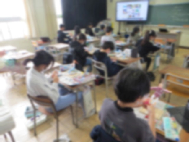 図工の時間に「未来のわたし」を制作しています。将来の自分の姿を思い描きながら、粘土で丁寧に作っています。