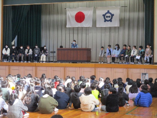来年度の児童会役員の選挙がありました。立候補者は、児童会役員に当選したら実現したいことを、しっかりと演説することができました。舞台に立って話すことはとても緊張しますが、練習してきたことをしっかりと本番で伝えることができました。立候補者全員がとても立派に演説を行いました。