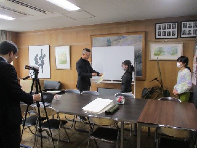 今日はオンラインで放送朝礼を行いました。5年生の総合的な学習で応募した新聞切り抜き作品や、全校で取り組んだ読書感想画、人権についての標語など入賞した児童の表彰を行いました。
