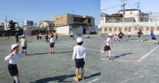 少し冷たい風が吹いていますが、みんな元気に体育の授業です。3年生も6年生もサッカーボールを使って体を動かしています。