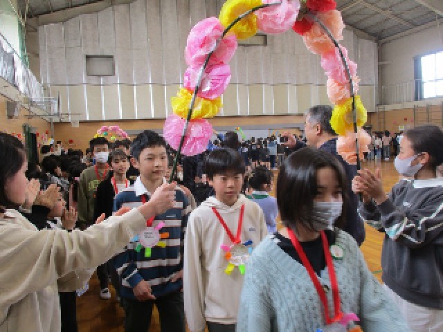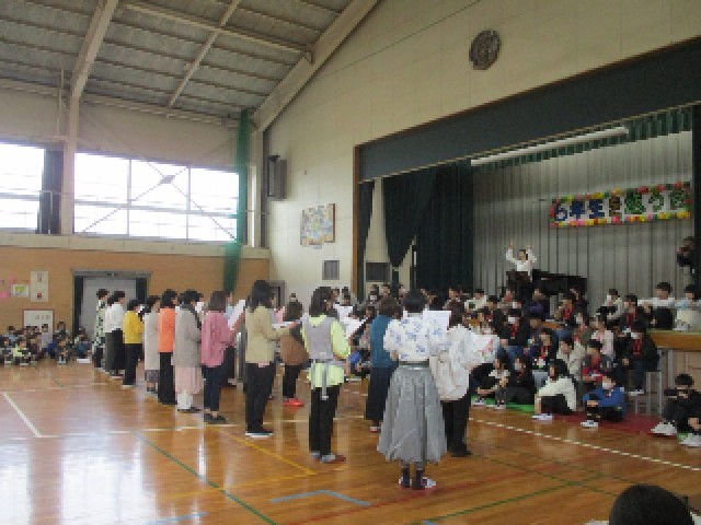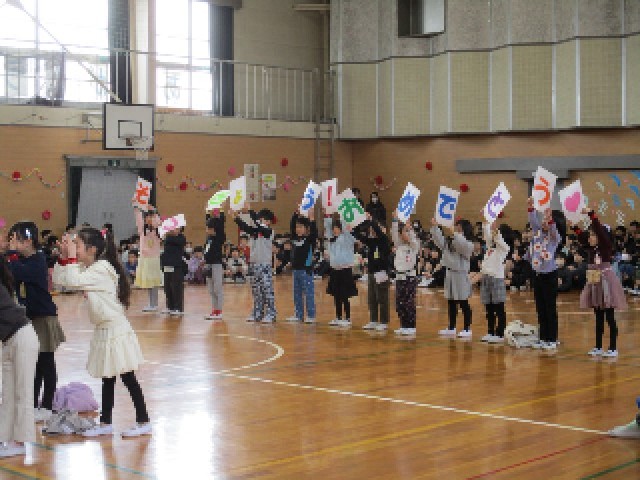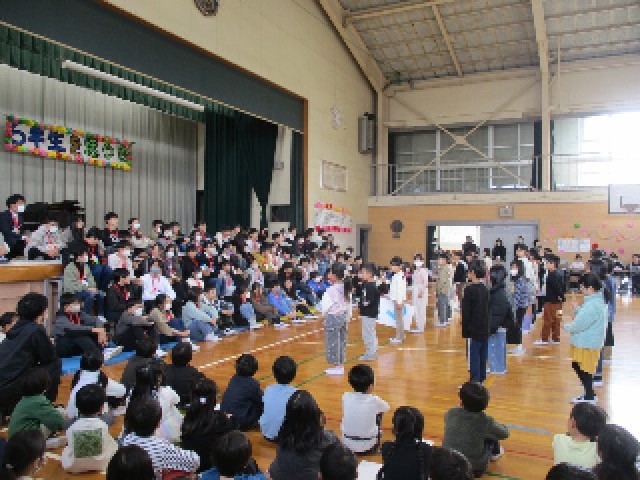 6年生を送る会がありました。1年生から5年生は今まで練習してきた出し物を、しっかりと6年生に披露することができました。一緒に楽しんだり、合唱したり、ダンスしたり、呼びかけしたりと感動や笑顔があふれるとても温かい会になりました。また、PTAの方々からの合唱もあり、6年生も全校に向けて、お礼の呼びかけや合唱に一段と力が入りました。とても素晴らしい会となりました。