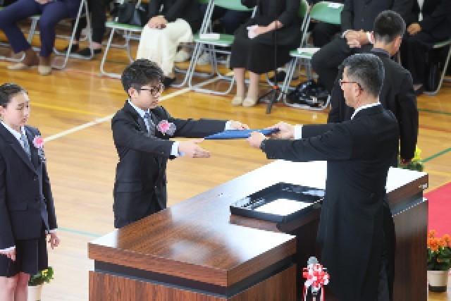 本日、卒業証書授与式を挙行いたしました。 朝方の雨も開式前にはすっかり上がり、まるで子どもたちの門出を祝福しているかのような素晴らしい天気となりました。式典では、一人ひとりが堂々とした態度で証書を受け取りました。