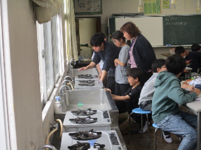 お茶の入れ方を学習しています。ガスコンロを使ってお湯を沸かす実習をしました。安全に気を付けてお茶をいれることができました。