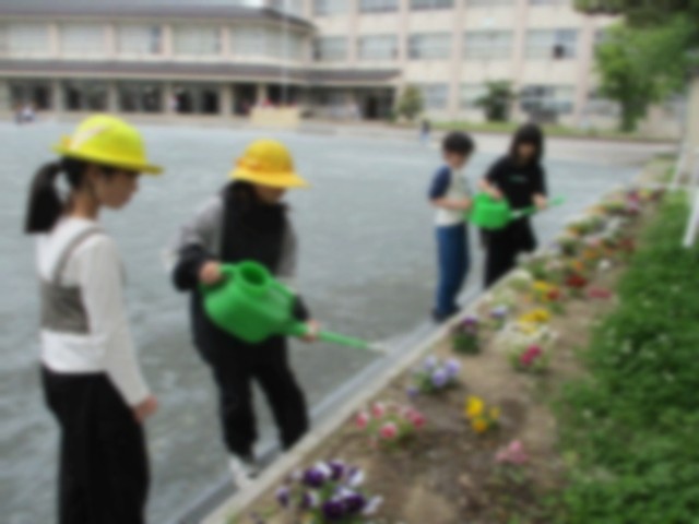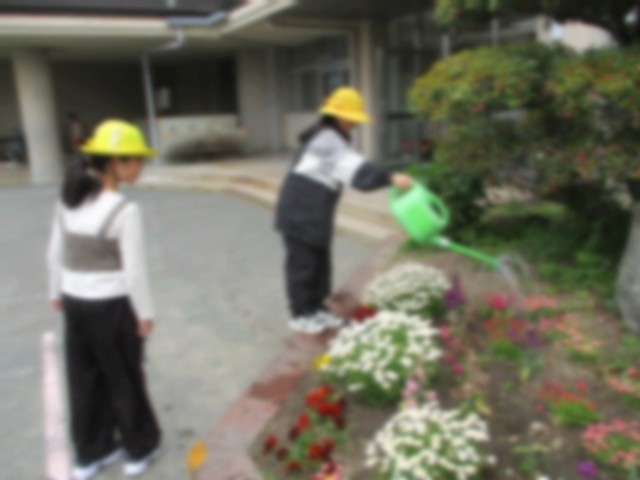 園芸委員会では、職員室前や運動場の周りにある花壇に水やりをしています。花壇には春の植物・昆虫などが集まってきます。いろいろな学年が生活科や理科の時間に観察できるように、園芸委員会が花壇の整備をしていきます。