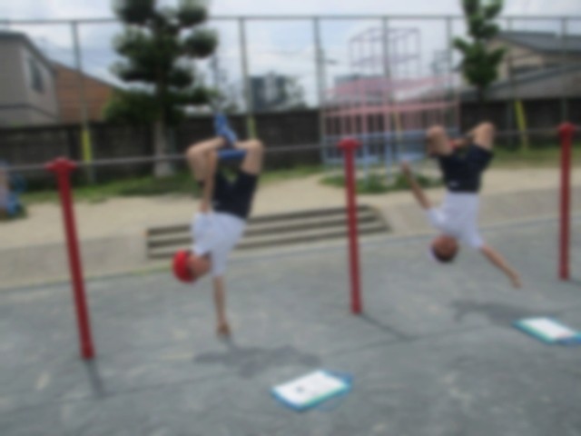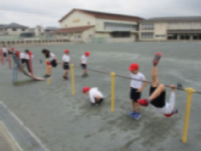 体育の授業では鉄棒運動を行っています。