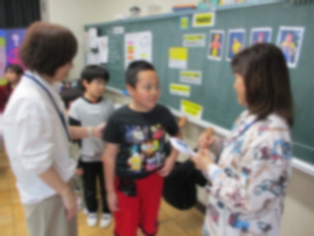 英語の時間は今年度 初めての英語の先生による授業でした。自己紹介の練習をしたり、英語のじゃんけんの掛け声でじゃんけん列車をしたりしました。最後は英語の先生と一人ずつ順番に自己紹介をしました。みんなしっかりと英語であいさつできました。