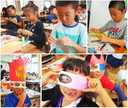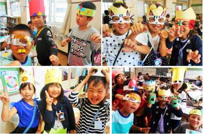 図工では、素敵な飾りをつけたわっかをかぶって、好きなものに変身しました。どの子も、想いのこもったお気に入りの作品ができました。