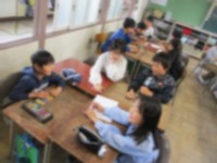 図工の時間には、一年間の作品をまとめました。こうすると、大切に保管できます。お家の人にも見ていただきましょう。
