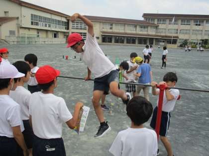 技の説明書を見ながら、やってみたい技に挑戦。「できた」という満足げな表情が見られました。お見事です。