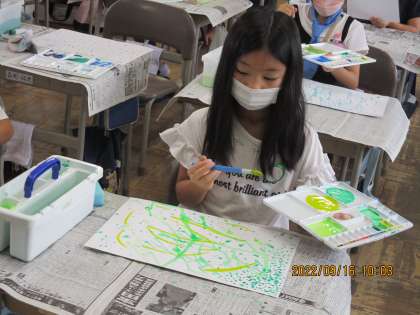 図画工作の授業で絵の具を使いました。