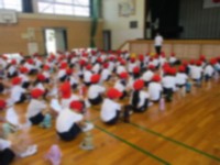 体育では、マット運動で、アザラシのように腕の力だけで前に進む動作をしました。先生から、「みんなじょうずだね」と褒められていました。