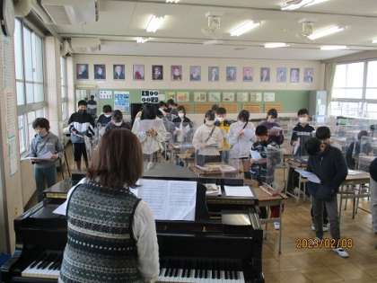 今練習している歌は、卒業式でも歌う予定の「ひろい世界へ」という曲です。