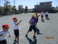 音羽公園でたくさん遊んだあと、また上手に並んで野黒公園に行きました。野黒公園では楽しみにしていたお弁当を食べました。おやつも食べました。とってもおいしかったですね。