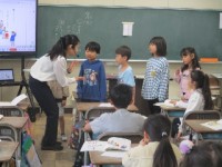 図画工作の授業では、はさみでジグザグ切ってみたり、ぐにゃぐにゃ切ってみたりしました。思いのままに切ったものを、何かの形に見立てて制作しました。