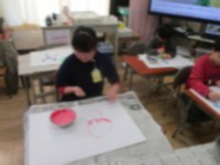 図工の時間にいろいろな材料を使ってスタンプ遊びをしました。野菜やトイレットペー...