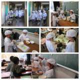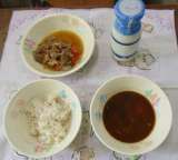 写真は1年生の準備の様子です。入学して半年が過ぎ、準備の様子も頼もしく感じられます。自分たちで落ち着いてどんどん進めていました。今日は、みそ汁も豚丼の具も、汁をこぼさないように気をつけながら、丁寧につけ分けていました。