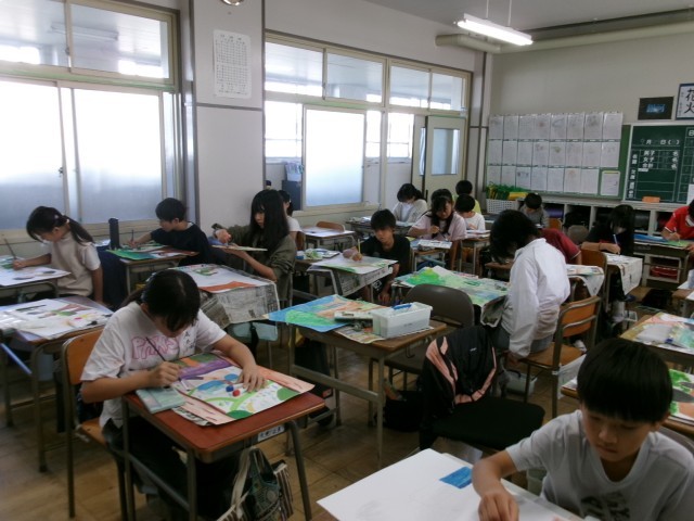 10/2 5年生 丁寧に、想いをのせて 公開日 2025/10/02 更新日 2025/10/02 5年生 今日の図工では、物語を聞いて膨らましたイメージを、思い思いの色づかいや構図で表現していました。どんな絵が完成するか楽しみですね。