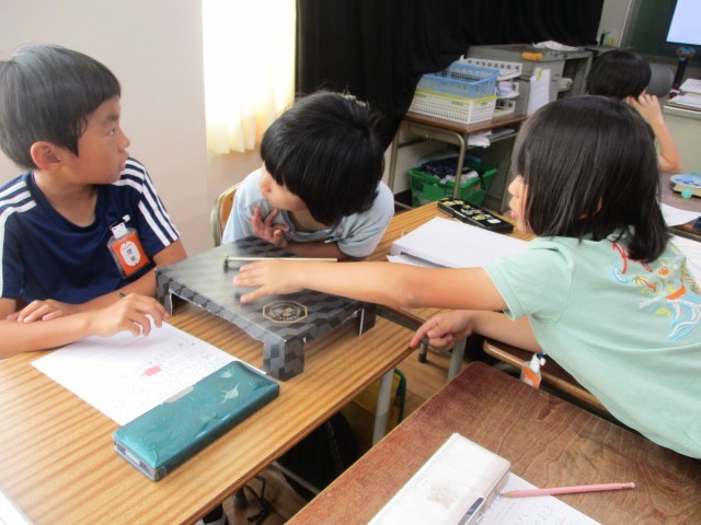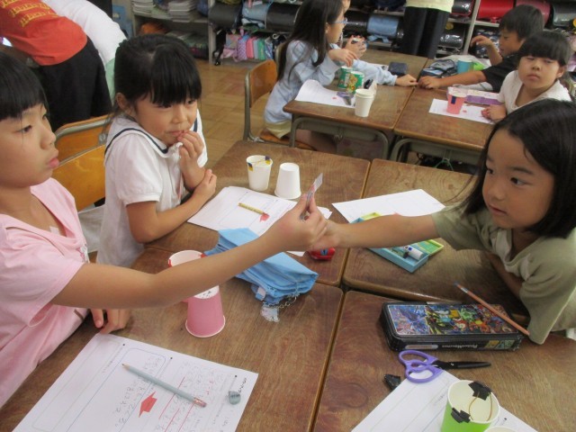 生活科で作ったおもちゃをより高く、より速く、よりおもしろくするために、みんなにアドバイスをもらいました。自分のおもちゃと友達のおもちゃの違いを見つけて、比べながら、次にどんな工夫をしたよいのかをみんなで考えました。さぁ、次の生活科の時間はパワーアップタイムです!楽しみですね。