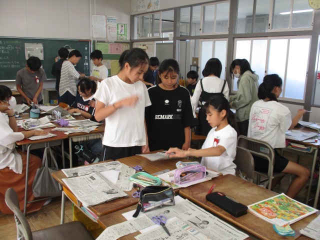 10/2 6年生 新聞紙でカバン作り!