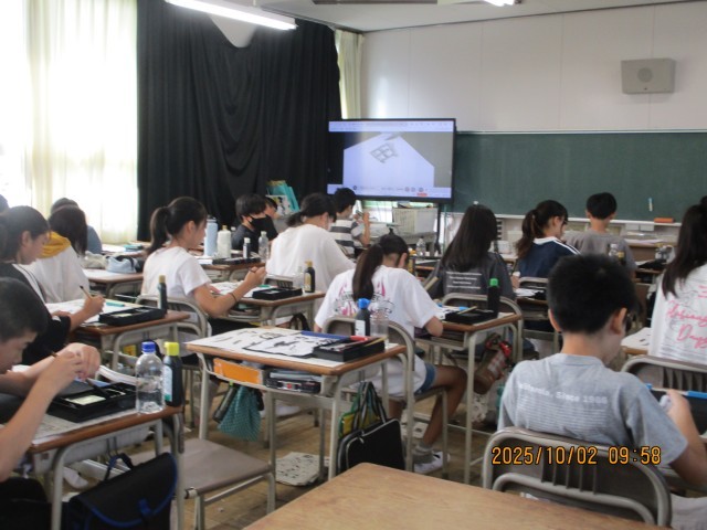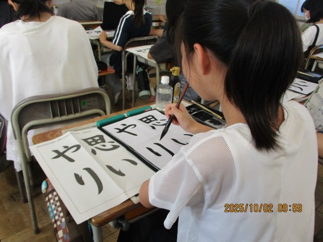 写真は、みんなが一生けん命、静かに習字をしている姿に心をひかれて撮りました。私もがんばってきれいな字を書きたいと思いました。