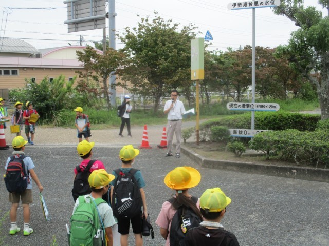 輪中の里では、その地域のことや過去の災害、治水工事のことについて学びました。