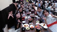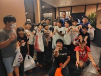 予定より少し遅れましたが、「いしちょう」に着きました。大きなホテルです。日も暮れて入り口の明かりにほっとします。みんな元気です!