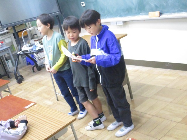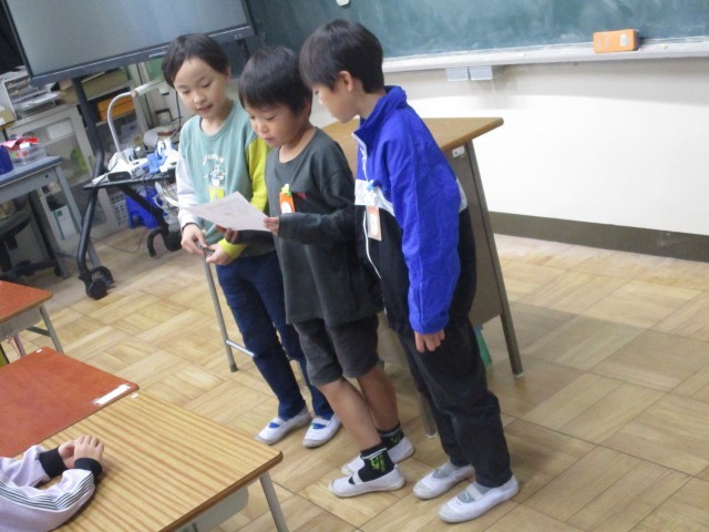 今日の朝、2年生の代表の子が1年生の教室に行きました。10月24日(金)に行うおもちゃまつりの招待状を渡しました。