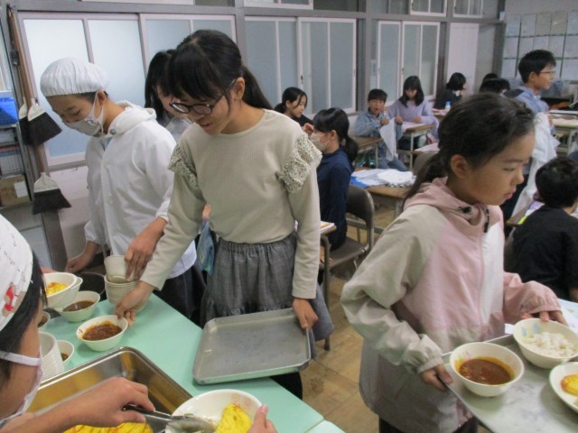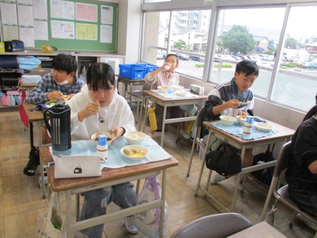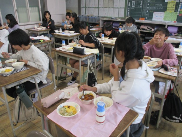 毎日6年生の教室では楽しく会食がされています。今日の給食は、シチューやオムレツが出ました。おかわりじゃんけんも毎日気合を入れてやっている子もいて、盛り上がっています。楽しく仲良く、そして食べ物に感謝しながら食べていきましょうね。