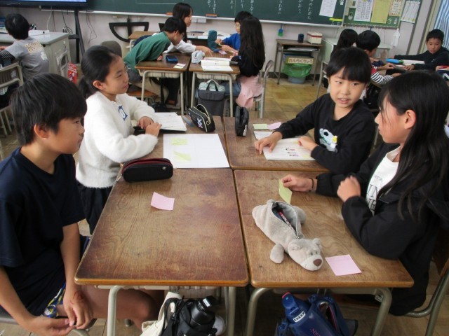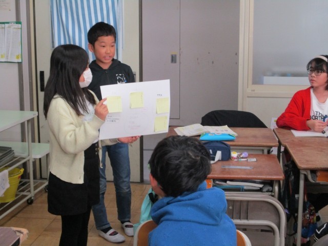 3組では「廊下歩行を守るためにできること」についてグループで話し合いをしました。グループでの話し合いのあとは、どんな話し合いがあったか、クラスの前で発表しました。活発な話し合いをすることができました。