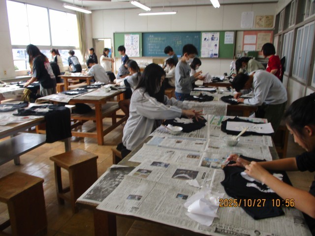 10/27 6年情報委員 体育祭で使うTシャツづくり 公開日 2025/10/27 更新日 2025/10/27 3年生 【この記事は情報委員会の児童が作成しました】 体育祭で使うTシャツの漢字をペンキで塗りました。真剣に取り組みました。上手に仕上がるといいです。
