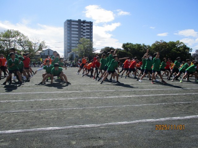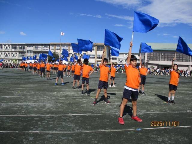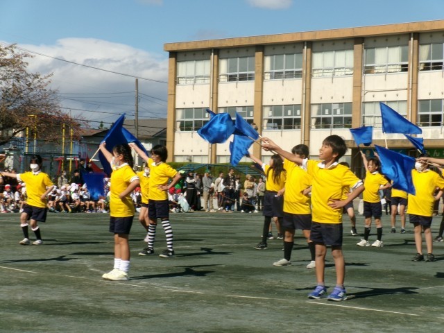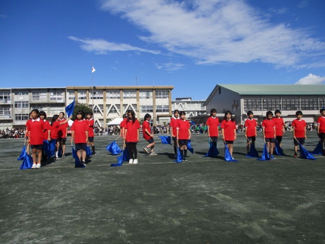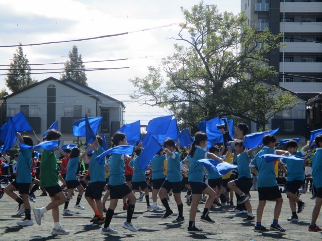 表現では、旗を使った集団演技をしました。心を一つにして作り上げた演技に高学年としての成長を感じました。