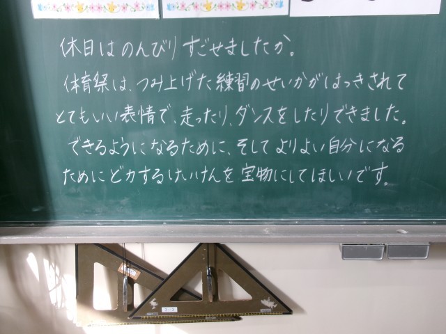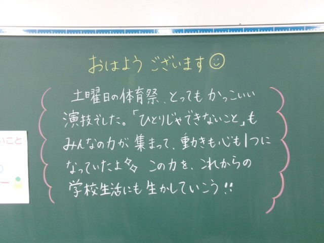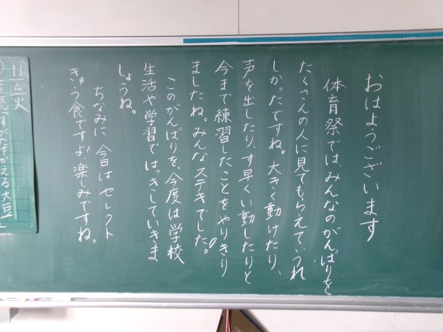 11/4 今朝の黒板「素晴らしかった体育祭!」