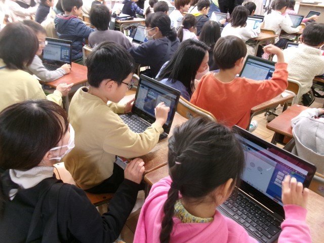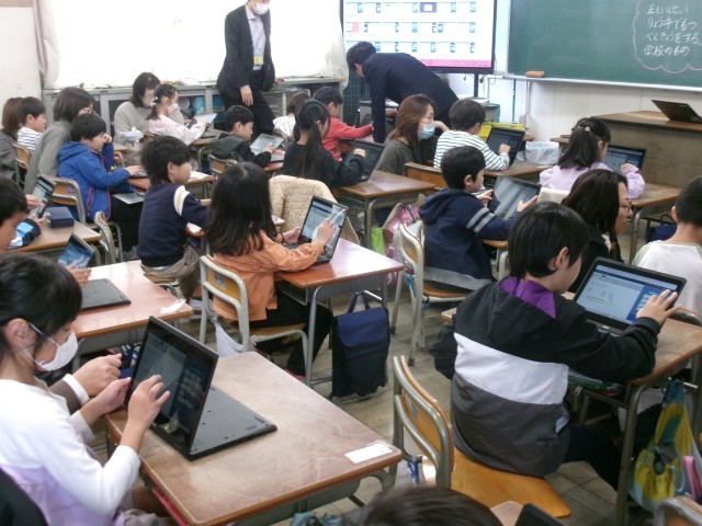 3時間目の授業公開の様子です。どのクラスもChromebookを使って学習をしていました。