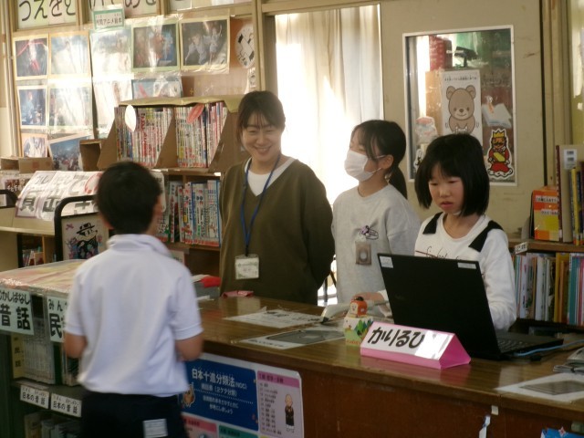 今日の放課 室内のようすです。室内でも、子どもたちは図書館で本を読んだり、友だち同士でクロムブックでゲームをしたり、先生のお手伝いをしたりして仲良く過ごしています。「何をして遊んでいるの?」と声をかけると、多くの子かどもたちから笑顔が返ってきます。※3枚目の写真の「+」をクリックするとそれ以外の笑顔が見られます。