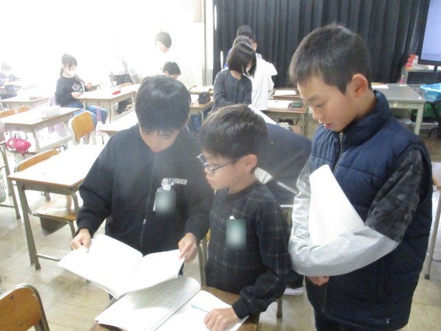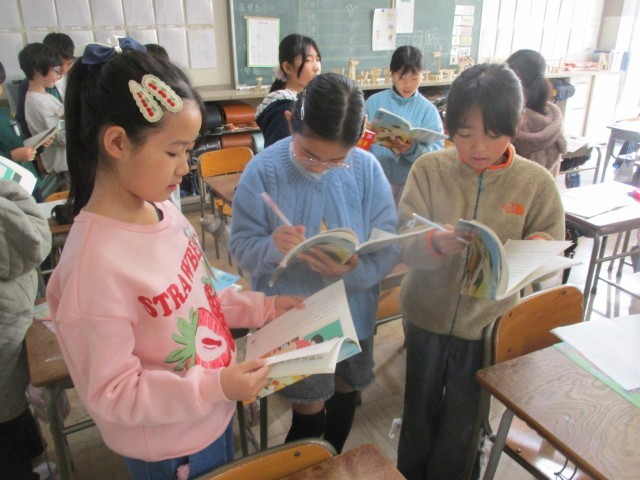 国語の学習で、新しい学習に入りました。物語のつながりに注目して読むお話で、今日は初めてお話を聞いてどんなつながりがあるのか話し合いました。