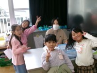 中学生が小学校にきて、小学生と中学生が一緒になってあいさつを行います。