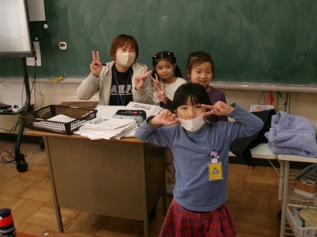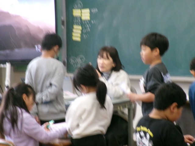 今日の放課、先生と子どものようすです。先生は子どもたちと一緒に遊ぶ時間を大切にしています。教室では、多くの子どもたちが先生とおしゃべりをしていました。また、先生と一緒に九九勉強や図工の作品作りをしている子もいました。子どもたちも先生も笑顔でした!※3枚目の写真も「+」をクリックするとその他の写真が見られます。