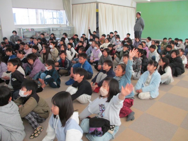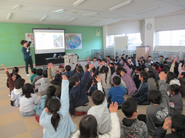 国際交流の時間に、イタリアの小学校の生活について写真を見たり、クイズに答えたりしました。